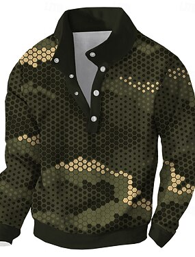 Муж. камуфляж Камуфляж Толстовка Армия Для охоты Длинный рукав Вырез под горло на открытом воздухе Для охоты Синий Зеленый Серый Пуговицы Осень Зима Дизайнер S M L XL XXL 3XL