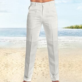 Муж. Льняные брюки Штаны Костюм Летние штаны Пляжные штаны Прямая нога Полотняное плетение Комфорт на открытом воздухе Повседневные Уличный стиль Стиль Черный Белый