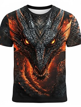 Муж. Животное Дракон Смешной Футболка С короткими рукавами Футболка 3D печать Вырез под горло Рубашка преувеличены Оригинальный рисунок Для вечеринок Праздники Синий Желтый Красный Лето Весна Одежда