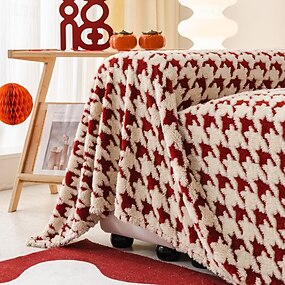 пледы на диван и кровать, мягкое уютное покрывало на диван с жаккардовым узором в ломаную клетку, декоративные пледы и пледы, красное теплое бархатное одеяло на свадьбу
