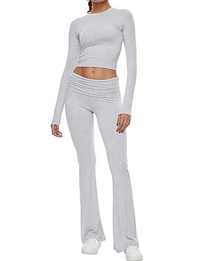 штаны для йоги эластичные расклешенные штаны для женщин с высокой талией тренировочные штаны для фитнеса и спортзала широкие удобные штаны для отдыха фиолетово-розовые