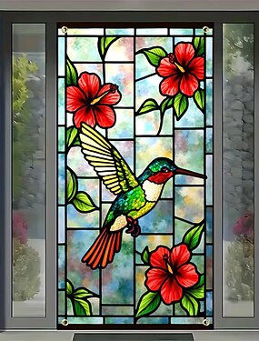 Декоративная дверная накладка из витражного стекла с колибри, красным цветком гибискуса, имитация мозаики из стекла, изображение птицы, пейзажа природы, настенная роспись для входной двери, крыльца,