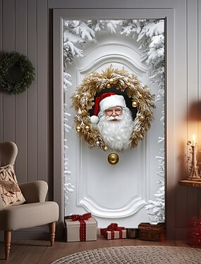 Новогодняя тематика Плакаты Дверная крышка Наружные баннеры Санта Клаус Симпатичные Стиль 3D