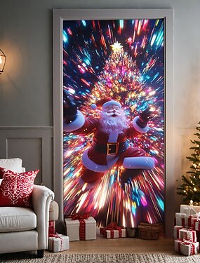 Новогодняя тематика Плакаты Дверная крышка Наружные баннеры Подарок Санта Клаус Симпатичные Стиль 3D