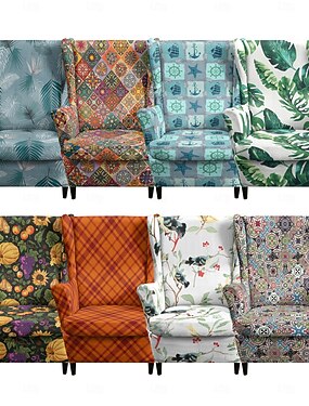 Чехол для кресла с высокой спинкой из полиэстера с цветочным, полосатым и геометрическим принтом для гостиной, спальни и домашнего офиса.