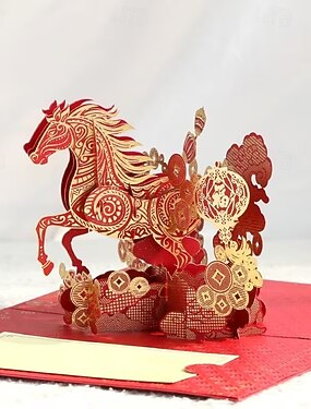 Открытка на китайский Новый год 2026 года – год Лошади – объемная золотая открытка с лошадью на бумаге для записей &конверт, счастливый лунный Новый год, день рождения, годовщина, благодарственная