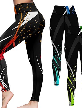 Жен. Штаны для йоги Подтяжка Утягивание живота Завышенная Тренировка в тренажерном зале Бег Фитнес Укороченные леггинсы Графика Красный Синий Зеленый Осень Виды спорта Спортивная одежда Эластичность