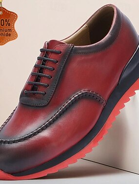 Муж. Классические туфли Для прогулок Классика Кожа Итальянская цельнозерновая коровья кожа Против скольжения Шнуровка Красный Зеленый Лето Весна