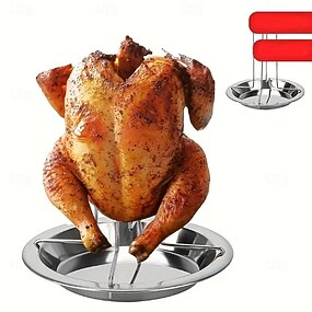 1/2 шт. решетка для запекания курицы из нержавеющей стали с поддоном для сбора жира - антипригарная, складная решетка для гриля, подходит для барбекю-грилей и духовок, прочный металлический гриль,
