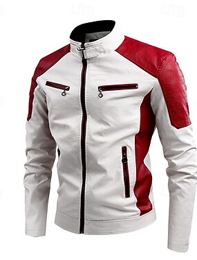 Муж. Кожаные куртки Байкерская куртка Гоночная кожаная куртка Мотоциклетная куртка Повседневные Отпуск Сохраняет тепло Пэчворк Наступила зима Контрастных цветов Мода Классика Воротник-стойка Обычная