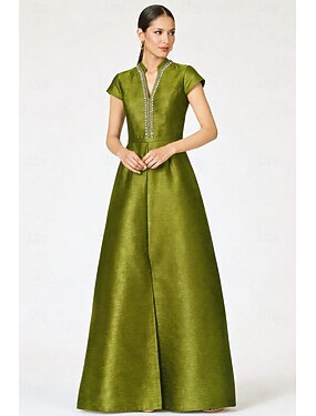 Футляр В пол Вышивка бисером Вечернее платье Платье матери невесты Выпускные платья Вечернее платье С пышной юбкой Торжественное платье Элегантный стиль Винтаж Блестящая С короткими рукавами