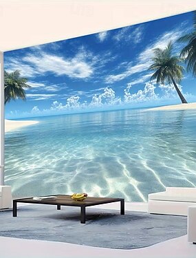 Гобелен с пляжным пейзажем, яркими пальмами и кристально чистым океаном – идеальное украшение для стен гостиной, спальни или дома в прибрежном стиле.