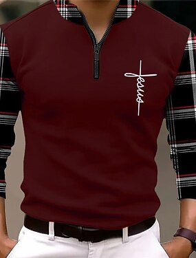 Муж. В клетку Вера Поло на молнии Рубашки-поло для гольфа Длинный рукав Футболки поло Молния Винтаж на открытом воздухе На каждый день Уличная одежда 3D С принтом Наступила зима Черный Белый Винный