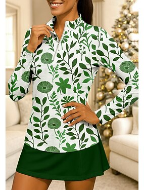 Жен. Цветочные Топы Рубашка Спортивная рубашка Футболка-поло Длинный рукав Молния Цветочный UPF50+ Устойчивость к УФ Эластичность Влагоотводящие Дышащий Волейбол Теннис Гольф