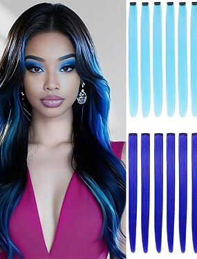 16 цветных накладных прядей на заколках, 22 прямые, 8 синие, 8 бирюзовые, синие, для женщин, аксессуары для синтетических волос.