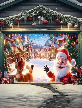 Рождественский занавес для гаражных ворот – праздничный баннер для украшения улицы, узор в виде Санта-Клауса, снеговика и елки, водонепроницаемый занавес для гаража, декор для дома в праздники