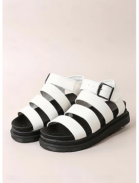 Жен. Сандалии Римская обувь Каблук сапоги В помещении Для клуба Сапоги до бедра Пряжки Платформа Круглый носок Элегантный стиль На каждый день Минимализм ПВХ С пряжкой Черный Серебряный Желтый