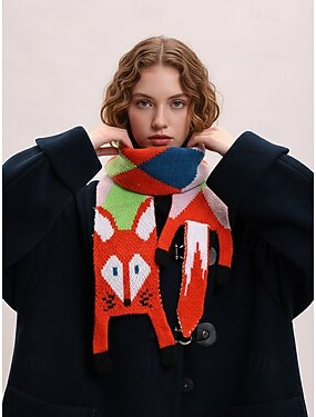 Женский вязаный шарф с лисой, милый зимний шарф с изображением животных, мягкая красочная шаль с героями мультфильмов для повседневной носки, подарков для отдыха на природе и праздников