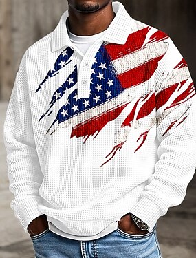 4 июля 2026 г., 250-летие Муж. Американский флаг США Поло Текстура Длинный рукав Футболки поло Лацкан На каждый день Одежда для спорта и отдыха На каждый день 3D печать Весна Осень Зима Белый 1