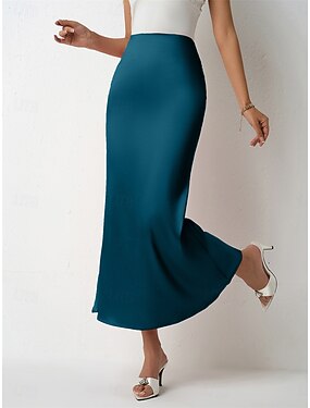 Жен. Элегантный стиль Мода Макси Завышенная Подол Полотняное плетение Секущиеся кончики Слабоэластичная Повседневные Для улицы Яблочно-зеленый Черный Цвет шампанского Военно-зеленный Лето