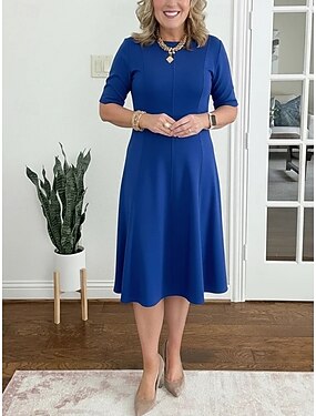 Жен. Платье средней длины Сарафан Платье A-силуэта На каждый день Пляж Для вечеринок Свободное облегание Полотняное плетение Рукав до локтя Вырез под горло Черный Светло-коричневый Зеленый Лето Весна