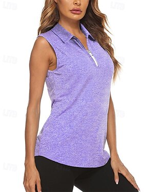 Жен. Однотонный Спортивная рубашка Футболка-поло Теннисная рубашка Без рукавов Молния Эластичность Влагоотводящие Дышащий Теннис Гольф Пиклбол Отложной Воротник на молнии Рубашка Верхняя часть