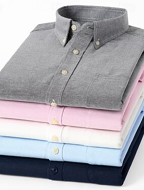 Муж. Рубашка Рубашка на пуговицах Оксфордская рубашка Полотняное плетение Повседневные Бизнес Светло-розовый Черный Белый Красный Длинный рукав Воротник с уголками на пуговицах (button-down)
