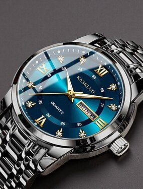 Мужские кварцевые часы - элегантный деловой стиль люминесцентные стрелки водонепроницаемость IPX7 двойной календарь с отображением даты и дня алюминиевый ремешок модный подарок для офиса или спорта