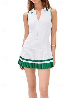 Жен. Пэчворк Теннисное платье Спортивное платье Без рукавов С разрезами Эластичный Впитывает пот и влагу Дышащий Теннис Гольф Пиклбол V-образный вырез Платья Черный Белый Теннисная одежда