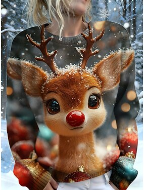 Рождественский женский свитер, милый, повседневный, с рисунком лося, с круглым вырезом, в стиле пэчворк, с длинным рукавом, обычный, с топами, вязаный, для рождественской вечеринки, праздника,