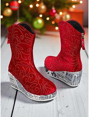 Женские ботильоны из красного бархата на танкетке с блестящими стразами и принтованной подошвой, модная зимняя обувь для рождественских вечеринок &ночной выход