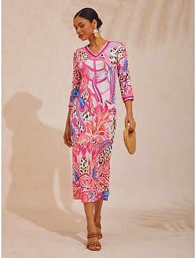 Жен. Платье средней длины Повседневное платье Платье A-силуэта Стиль На каждый день Отпуск Повседневные Стандартный Графика Геометрический принт Рукав 3/4 V-образный вырез Черный Белый Синий Зеленый