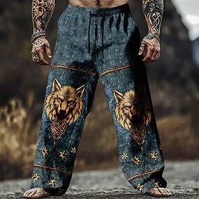 Муж. Волк Викинг Кельтское искусство Штаны Повседневные брюки Мешковатые брюки Нормальная Винтаж Ретро Повседневные на открытом воздухе Эластичный шнурок на талии Брюки из льняной ткани с карманами