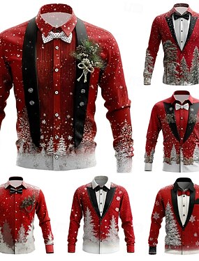 Новогодняя тематика Муж. Новогодние костюмы Дизайн искусственного воротника и костюма Рубашка-смокинг с принтом в виде галстука Рубашка Кнопка рубашка Длинный рукав Веселая