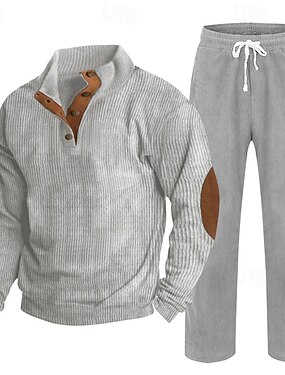 Муж. Толстовка Спортивный костюм Комплект одежды Воротник-стойка на открытом воздухе Повседневные Спорт Кулиска Карман Контрастных цветов Черный Темно синий Коричневый Полиэстер Корд Спортивная одежда