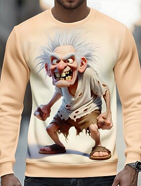 Муж. 3D Пожилой человек Толстовка На каждый день Длинный рукав Вырез под горло Дом Подарок Уличная одежда Цвет хаки Crewneck 3D Все сезоны Дизайнер S M L XL XXL XXXL