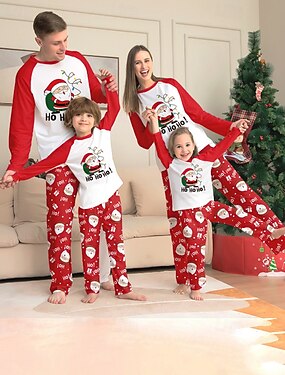 Семейный вид Пижамы Рождественский образец Дом С принтом Красный Длинный рукав Активный Подходящие наряды