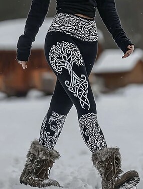 Леггинсы Viking Boho для женщин винтажный этнический стиль полный длины высокая талия графический абстрактный 3D-принт быстрая сушка воздухопроницаемость мягкие эластичные формальные на отдых черные