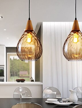 Светодиодные люстры, подвесной светильник V-intage, креативный подвесной светильник из массива дерева и стекла, янтарная люстра с одной плафоном для ванной комнаты, столовой, склада, гостиной,