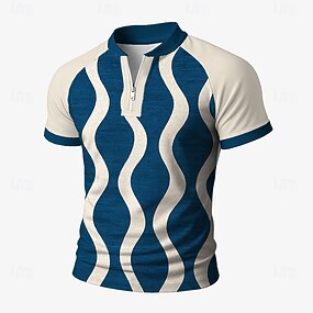 Муж. геометрический Линии Поло на молнии С короткими рукавами Воротник-стойка Деловые Современное Для отдыха Бизнес Одежда для спорта и отдыха На каждый день Молния 3D печать Лето