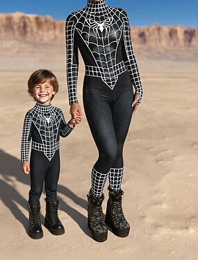 Семейный вид Комбинезон Шаблон Хэллоуина Для улицы С принтом Серебряный Черный-1 Черный Длинный рукав Подходящие наряды