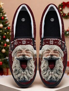 Мужские рождественские туфли без застежек с изображением лица Санты – праздничный дизайн с 3D-лицом Санты, удобный повседневный стиль, идеально подходят для рождественских вечеринок и праздничных встреч