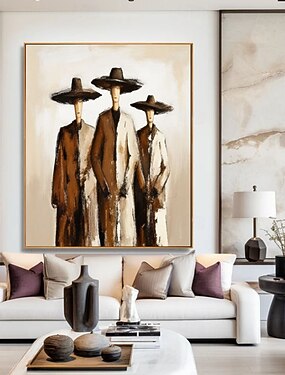 современное фигуративное настенное искусство, современное абстрактное искусство с изображением людей, нейтральный декор в стиле галереи, большое минималистичное произведение искусства, привлекающее