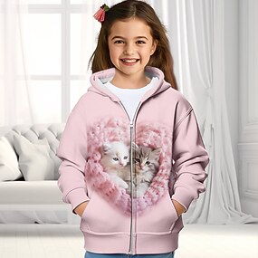 Девочки 3D Кот Толстовка Пальто Верхняя одежда Длинный рукав 3D печать Осень Зима Активный Мода Симпатичные Стиль Дети 3-12 лет на открытом воздухе Повседневные Стандартный