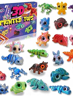 Мини-календарь с изображением животных, напечатанный на 3D-принтере, набор из 24 подвижных гибких фигурок с блестящими глазами, подарок для детей, мальчиков, девочек, малышей, праздничные сувениры,