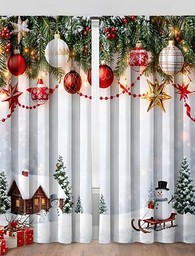 Рождественские шторы, цифровая печать на 3D-принтере, праздничные декоративные панели для гостиной, спальни, декор для дома, комплект мягких тканевых штор