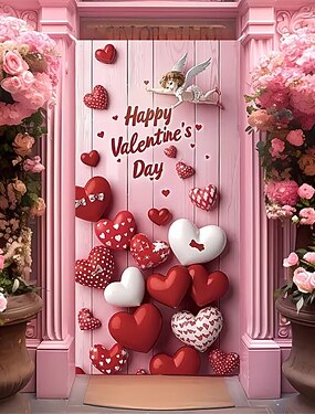 День святого Валентина Плакаты Дверная крышка Наружные баннеры Любовь Сердце Симпатичные Стиль Романтика 3D Вечеринка Общежитие Фоны для съемки Входная дверь Украшения для предложения руки и сердца