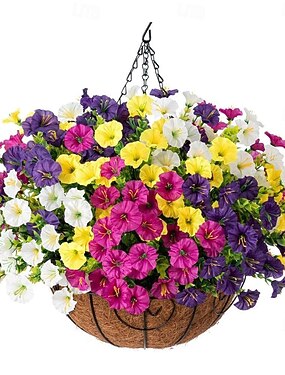 Искусственные уличные цветы в подвесных корзинах, устойчивые к ультрафиолетовому излучению искусственные петунии с подвесным кашпо для украшения входной двери, крыльца, весеннего двора.