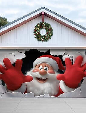 Рождественская обложка для гаражных ворот с Санта-Клаусом, прорывающимся сквозь стену, большой подвесной фон для улицы, праздника, настенного баннера, двора, дома, праздничного 3D-украшения для