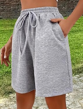 Жен. Шорты Летние шорты Пляжные шорты Отпуск Мода На каждый день Короткие Завышенная Кулиска Карман Эластичная талия Комфорт Мягкий Дышащий Слабоэластичная Уличная одежда Пляж Праздники Серый